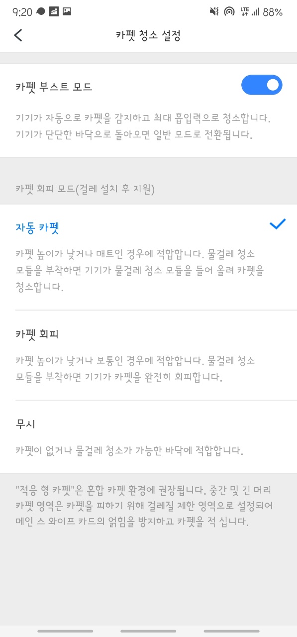 - 카페트를 구분해서 물청소를 안한다는데 카펫이 없어서 확인 못했다. 하지만 일단 기능은 장점